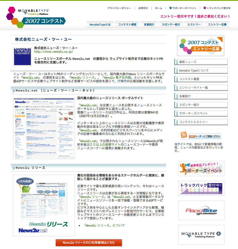ネットPRのニューズ・ツー・ユーは「Movable Type コンテスト 2007」を応援します